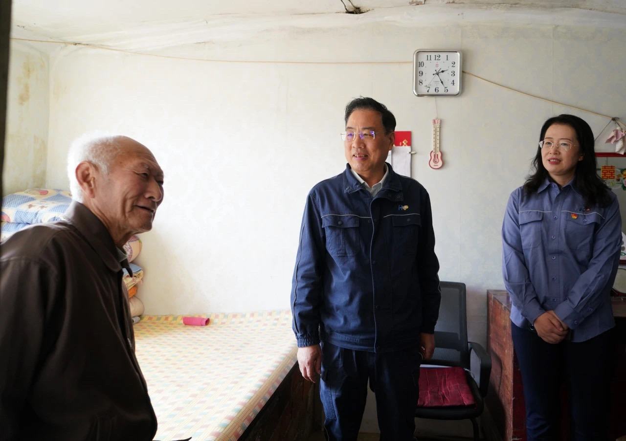 在溝口村李西屯82歲李明才老人家中,一進(jìn)屋就看到衣柜上擺著公司2013年為老兩口拍攝的金婚照。老人指著照片說:“這就是你們核電拍的,10年了,你們看我變化大嗎?”張衛(wèi)東打趣道:“100歲的時候,我們還給你們拍。”在與老人交流中,張衛(wèi)東得知老人年輕時當(dāng)了8年兵,也是一位有50多年黨齡的老黨員,不由得為老人家豎起拇指。李明才老人非常自豪地向大家展示自己“光榮在黨50年”勛章。張衛(wèi)東希望老兩口能繼續(xù)保持樂觀心態(tài),笑口常開,并送上了節(jié)日的祝福。